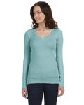 Ladies' Sheer Mini Rib Long-Sleeve V-Neck T-Shirt