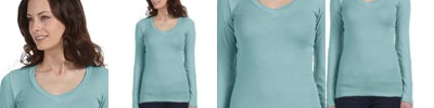 B8750 Ladies' Sheer Mini Rib Long-Sleeve V-Neck T-Shirt