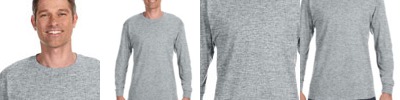 100% preshrunk cotton; Seamless double-needle stitched,1/2" rib knit collar; Sideseamed with tape neck and shoulders; Double-needle stitched sleeves & bottom hem; Sport Grey Ring Spun: 90/10 cotton/poly; Heather Sapphire, Heather Dark Chocolate: 65/35 poly/cotton; Heather Maroon, Heather Navy, Dark Heather:65/35 poly/cotton;
