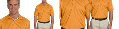 100% polyester micro-mesh; Dri-Fast moisture management for cool, dry comfort; Contrast shoulder piecing; Single-needle stitching on raglan seams; Signature inside stripe neck tape with side vents; Double-needle split-tail hem; Half-moon mesh sweat catch;