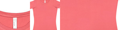 5.5 oz. 100% ringspun cotton print jersey; Back locker patch; Coverstitch ribbed collar (97/3 ringspun cotton/spandex); Taped shoulder-to-shoulder; Double-needle hem sleeves and bottom; Bleed resistant ink is recommended ;