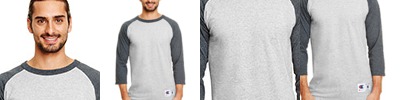 100% cotton; 3/4 length raglan sleeves; Double-needle stitching on sleeves and bottom hem; "C" logo on left sleeve; Tagless; Oxford Gray is 90% cotton, 10% bale-dyed cotton;